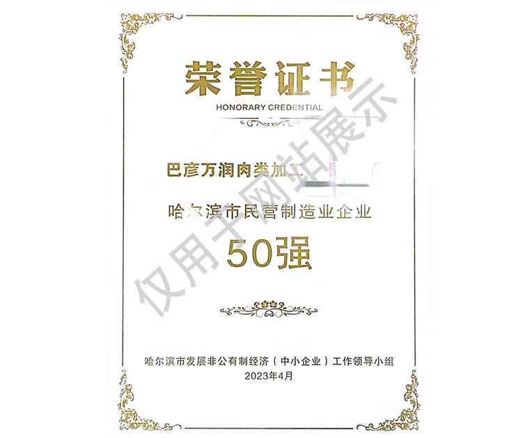 2016年公司通過(guò)了中國(guó)質(zhì)量認(rèn)證中心的質(zhì)量管理體系(ISO9001)和食品安全管理體系(ISO22000)認(rèn)證;2017年已取得國(guó)家進(jìn)出口企業(yè)認(rèn)證;是中國(guó)肉類(lèi)協(xié)會(huì)會(huì)員單位,黑龍江省肉類(lèi)協(xié)會(huì)副會(huì)長(zhǎng)單位;2017年,公司產(chǎn)品經(jīng)中國(guó)綠色食品發(fā)展中心審核,被認(rèn)定為綠色食品A級(jí)產(chǎn)品;被省畜牧獸醫(yī)局確定為全國(guó)生豬屠宰標(biāo)準(zhǔn)化創(chuàng)建示范企業(yè)(全國(guó)僅6家)。2018年12月,被評(píng)定為市級(jí)農(nóng)業(yè)產(chǎn)業(yè)化重點(diǎn)龍頭企業(yè)。2019年1月,被評(píng)定為省級(jí)農(nóng)業(yè)產(chǎn)業(yè)化龍頭企業(yè)。